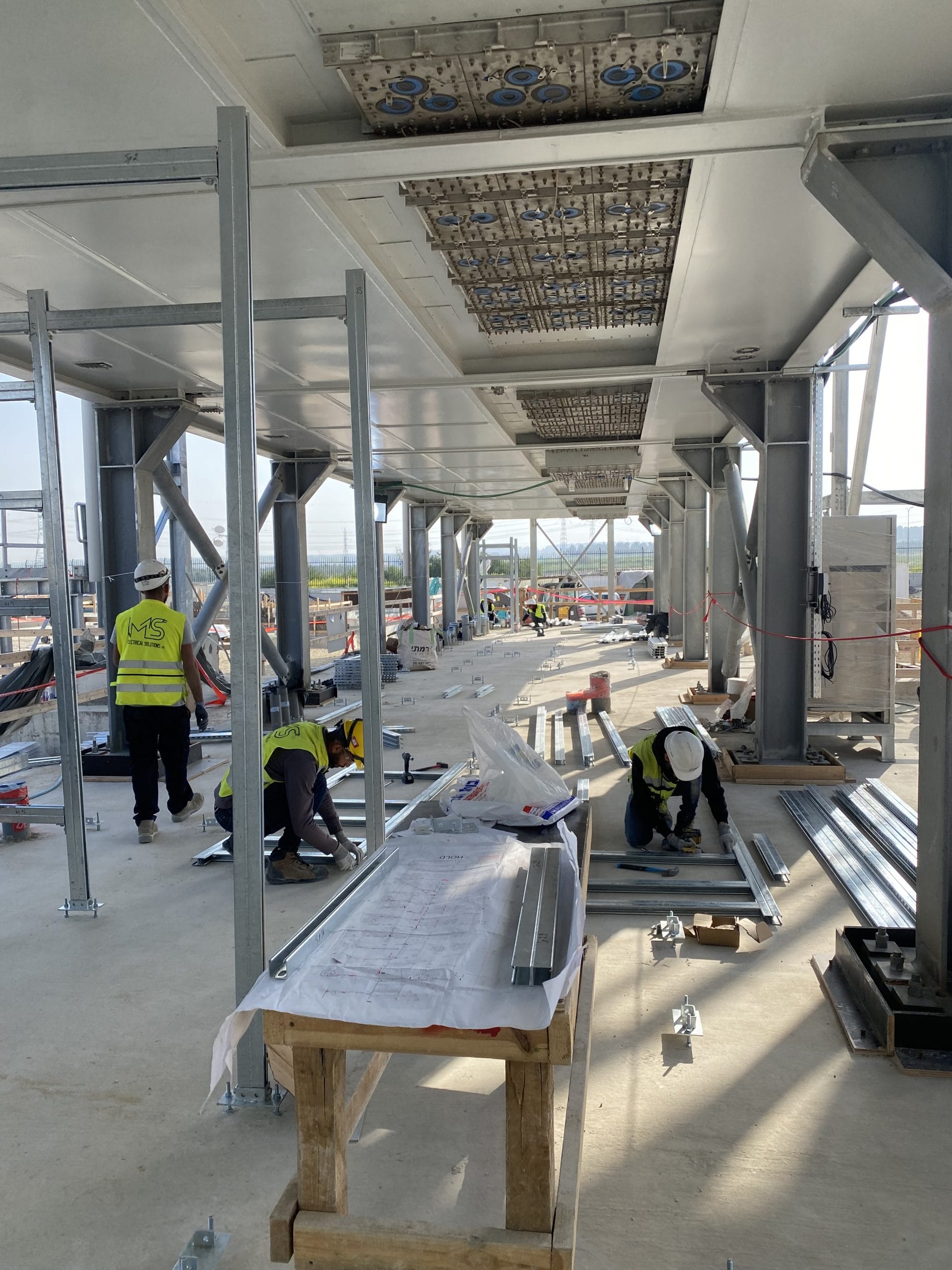 במהלך העבודה, תוכננו והותקנו עמודי תמיכה מותאמים לחדרי מתח גבוה, לצד רכיבי מערכות חשמל ותשתיות ממוכנות הכוללות סולמות ומתקנים מתקדמים.